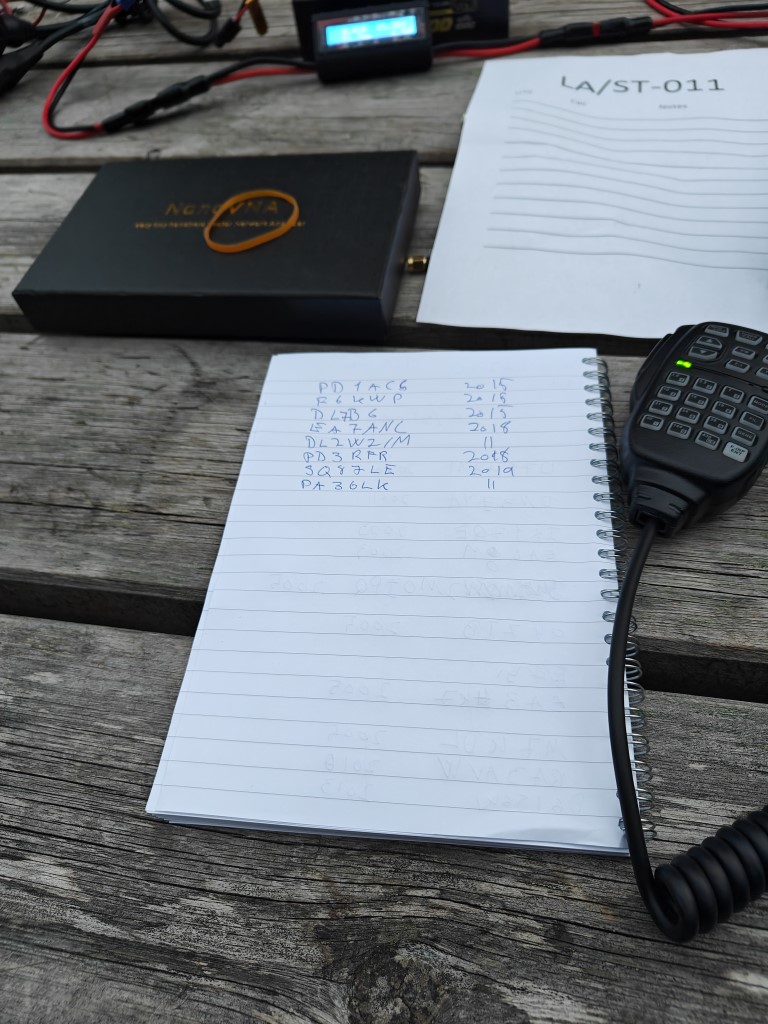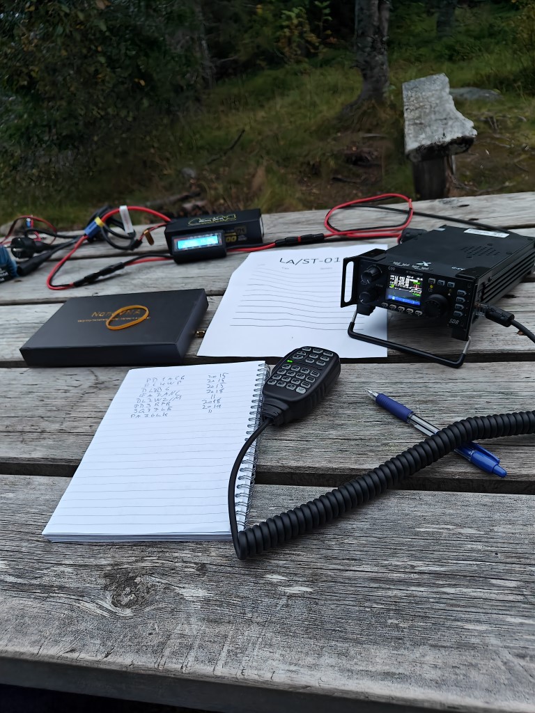 Then we let the action begin, and on the very first CQ call I got a QSO even before I spotted myself on SOTA Watch! DJ1HAM was my contact and we had a short but nice QSO on 20m SSB. Then the contacts started pouring in, and since I am very new at this, I got some help from Stian LB5SH to decipher and note down the callsigns. This is definitely something I need to work on improving, but it will come with time and practice. After 30 minutes I had 26 QSOs in my log and Stian asked if he could have a little go at the radio. Obviously it would only be a couple of minutes since it started getting dark and we had to return from the summit soon. Obviously.